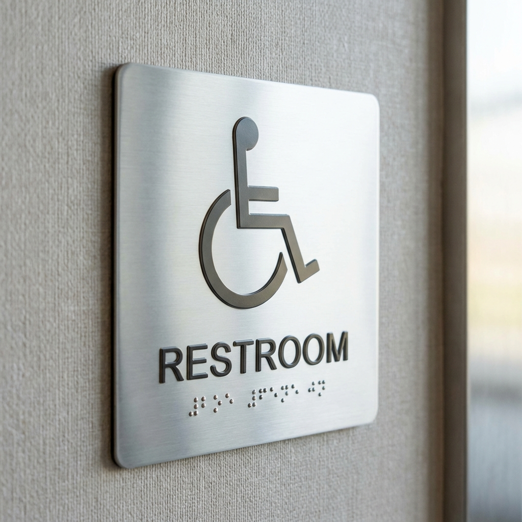 Señal braille en alto relieve fabricada según Ley 29973, DS 002‑2014‑MIMP y NTP 873.001. Material resistente, lectura táctil precisa y alto contraste. Ideal para auditorías, licencias y adecuación de espacios accesibles.
